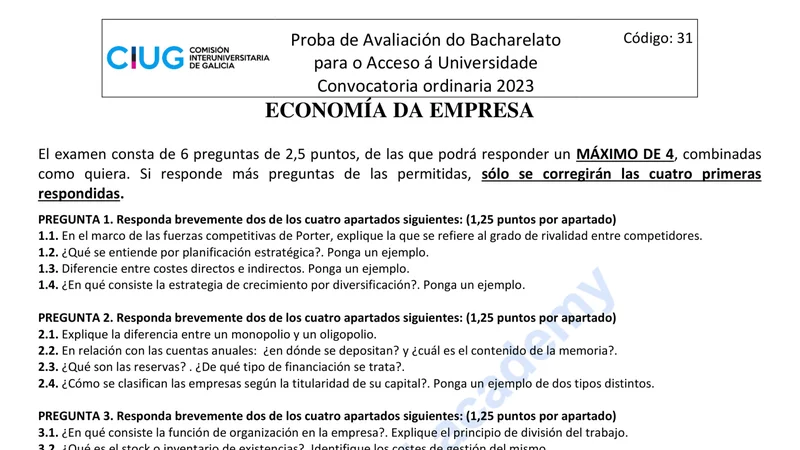 Reservar clase gratis →Examen de Economía selectividad Galicia (Ordinaria 2023)
