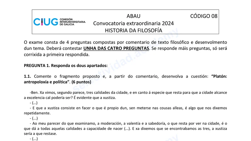 Reservar clase gratis →Examen de Filosofía selectividad Galicia (Extraordinaria 2024)