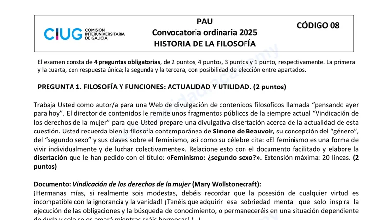 Examen PAU Filosofía selectividad GaliciaOrdinaria 2025