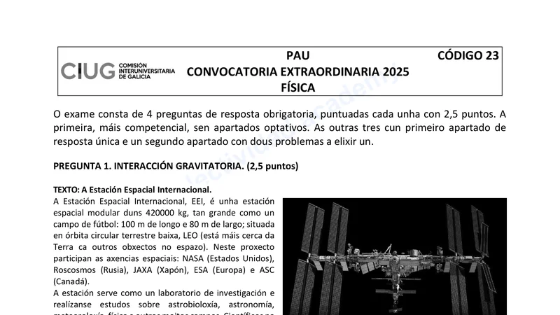 Examen PAU Física selectividad Galicia — Extraordinaria 2025