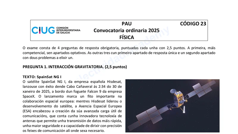 Reservar clase gratis →Examen de Física selectividad Galicia (Ordinaria 2025)