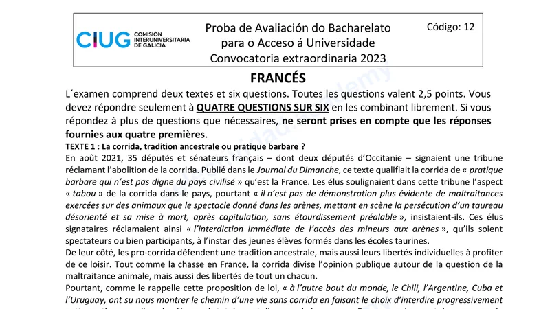 Examen PAU Francés selectividad Galicia — Extraordinaria 2023