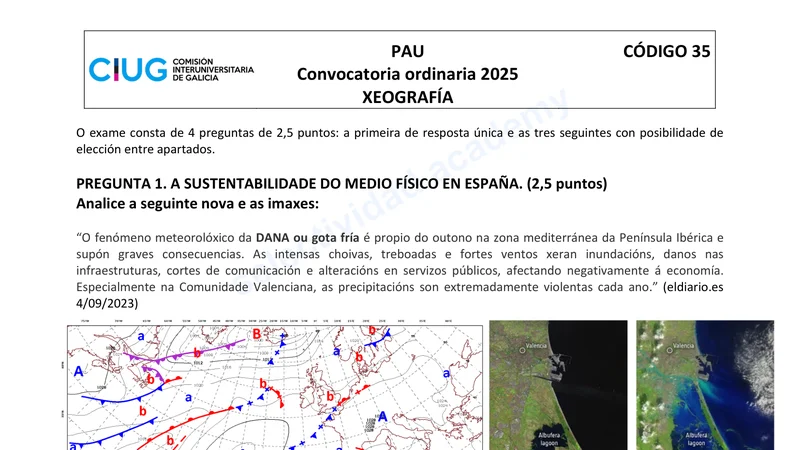 Reservar clase gratis →Examen de Geografía selectividad Galicia (Ordinaria 2025)
