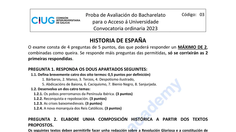 Reservar clase gratis →Examen de Historia de España selectividad Galicia (Ordinaria 2023)