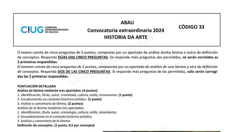 Examen PAU Historia del Arte selectividad Galicia — Extraordinaria 2024