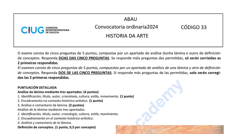 Examen PAU Historia del Arte selectividad Galicia — Ordinaria 2024