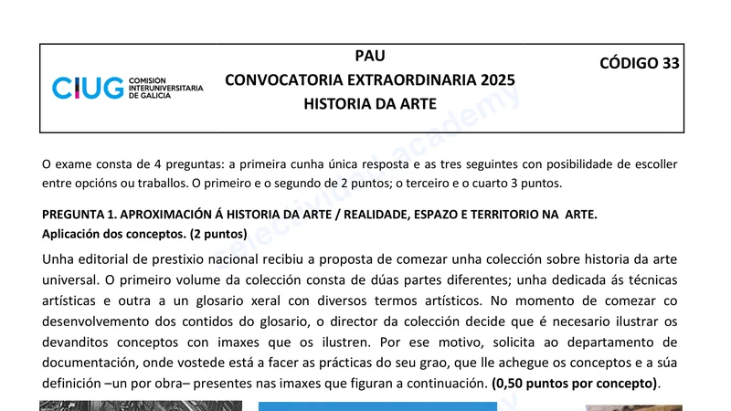 Examen PAU Historia del Arte selectividad Galicia — Extraordinaria 2025