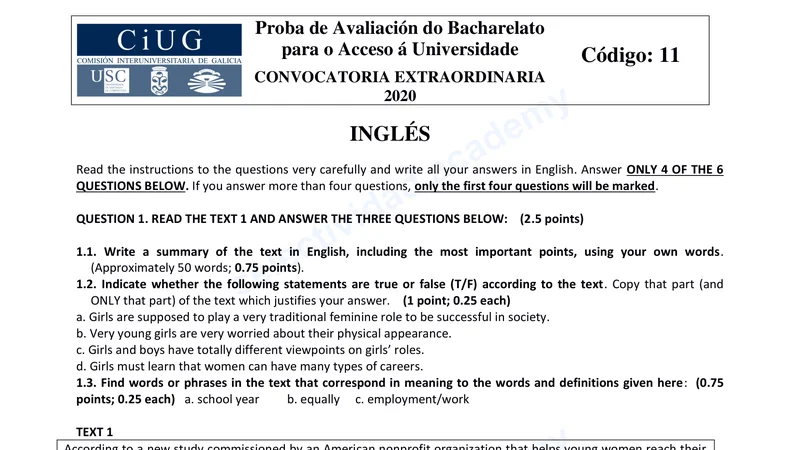 Reservar clase gratis →Examen de Inglés selectividad Galicia (Extraordinaria 2020)