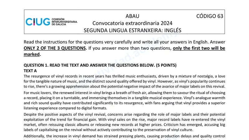 Reservar clase gratis →Examen de Inglés selectividad Galicia (Extraordinaria 2024)