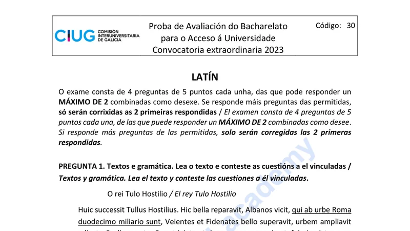 Reservar clase gratis →Examen de Latín II selectividad Galicia (Extraordinaria 2023)