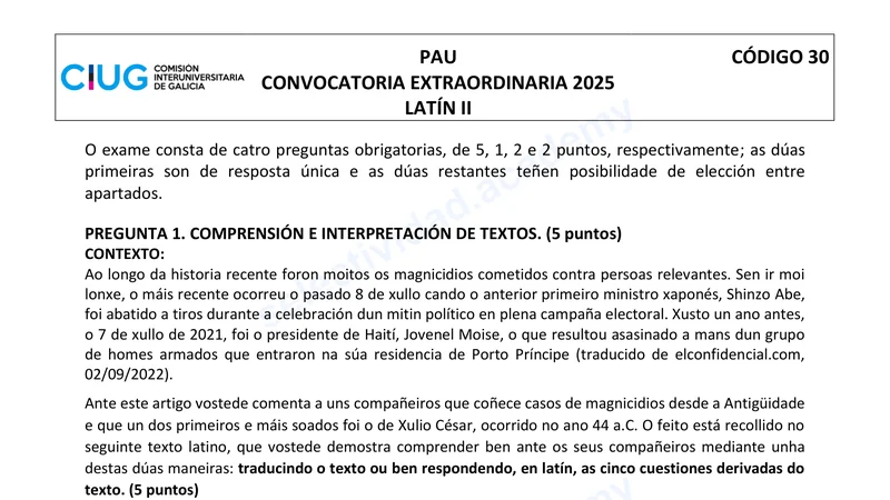 Reservar clase gratis →Examen de Latín II selectividad Galicia (Extraordinaria 2025)