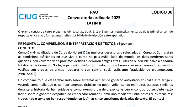Reservar clase gratis →Examen de Latín II selectividad Galicia (Ordinaria 2025)