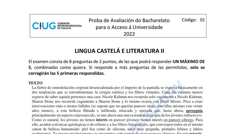 Reservar clase gratis →Examen de Lengua Castellana selectividad Galicia (Extraordinaria 2022)