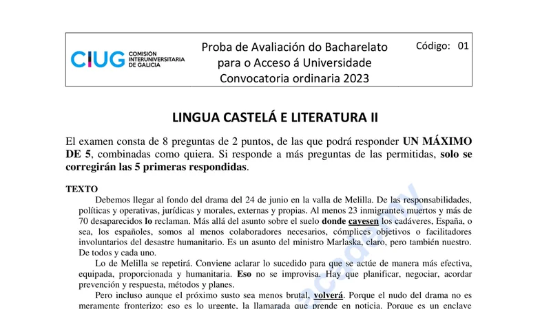 Reservar clase gratis →Examen de Lengua Castellana selectividad Galicia (Ordinaria 2023)