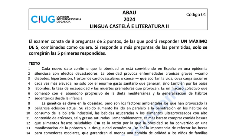 Examen PAU Lengua Castellana selectividad Galicia — Ordinaria 2024