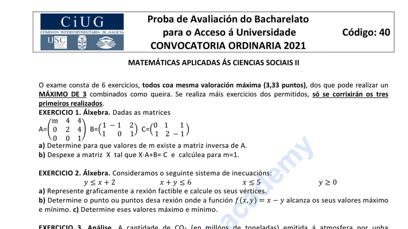Reservar clase gratis →Examen de Matemáticas CCSS selectividad Galicia (Ordinaria 2021)