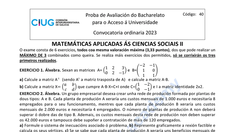 Reservar clase gratis →Examen de Matemáticas CCSS selectividad Galicia (Ordinaria 2023)