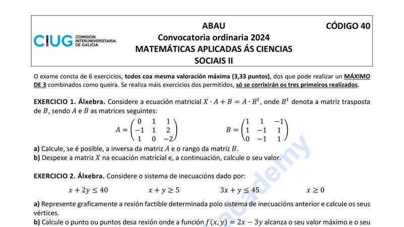 Reservar clase gratis →Examen de Matemáticas CCSS selectividad Galicia (Ordinaria 2024)