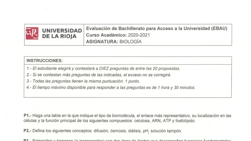 Examen PAU Biología selectividad La Rioja — Ordinaria 2021