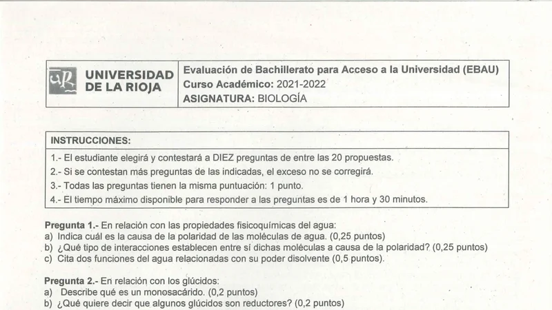 Reservar clase gratis →Examen de Biología selectividad La Rioja (Ordinaria 2022)