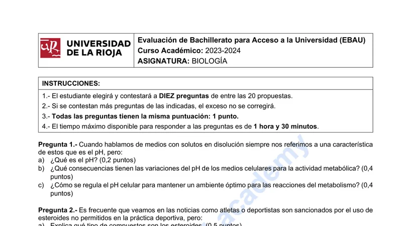 Examen PAU Biología selectividad La Rioja — Ordinaria 2024