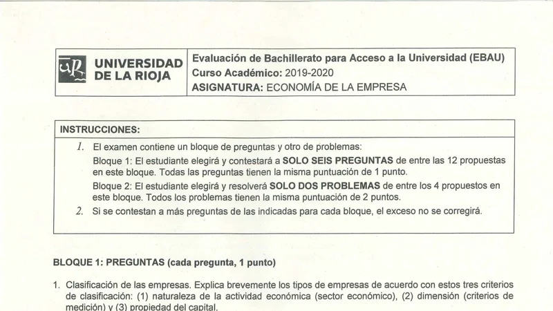 Reservar clase gratis →Examen de Economía selectividad La Rioja (Extraordinaria 2020)