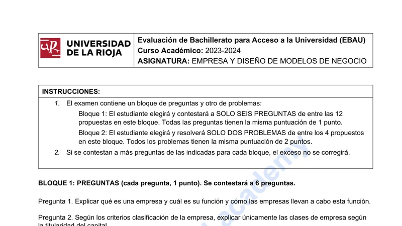 Reservar clase gratis →Examen de Economía selectividad La Rioja (Extraordinaria 2024)
