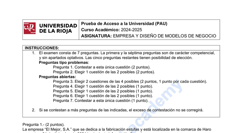Reservar clase gratis →Examen de Economía selectividad La Rioja (Ordinaria 2025)