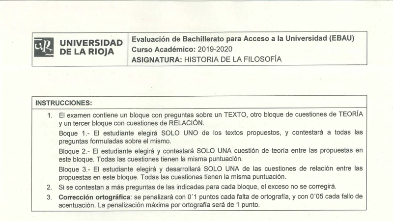Examen de Historia de la Filosofía selectividad La RiojaExtraordinaria 2020