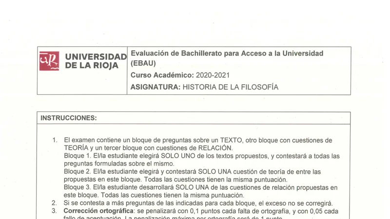 Examen de Historia de la Filosofía selectividad La RiojaOrdinaria 2021