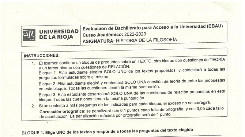 Examen de Historia de la Filosofía selectividad La RiojaOrdinaria 2023