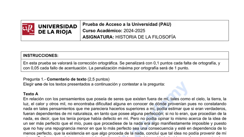Examen de Historia de la Filosofía selectividad La Rioja (Ordinaria 2025)