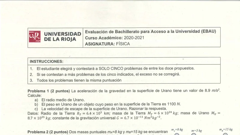 Examen PAU Física selectividad La Rioja — Extraordinaria 2021
