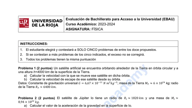 Examen PAU Física selectividad La Rioja — Extraordinaria 2024
