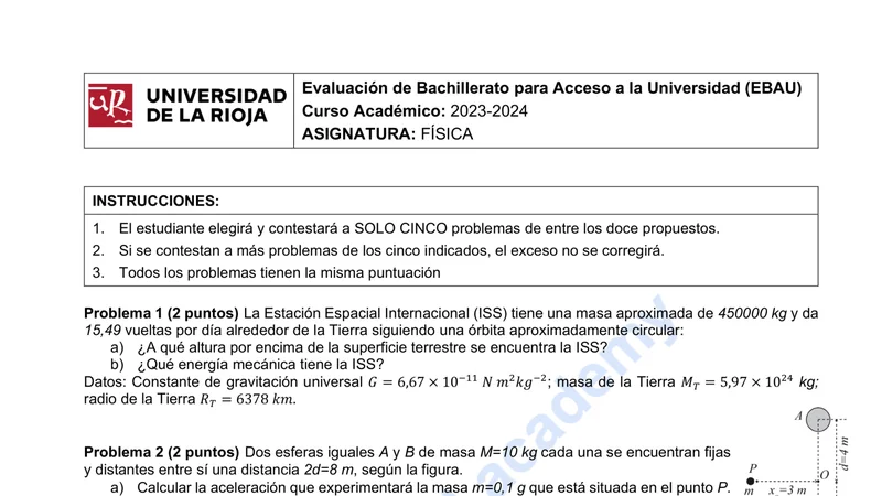 Examen PAU Física selectividad La Rioja — Ordinaria 2024