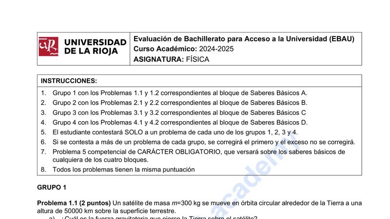 Examen PAU Física selectividad La Rioja — Ordinaria 2025