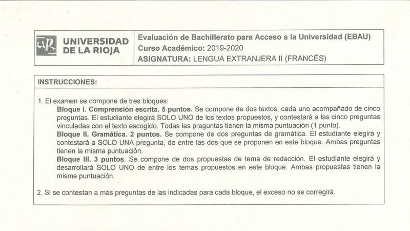 Reservar clase gratis →Examen de Francés selectividad La Rioja (Extraordinaria 2020)