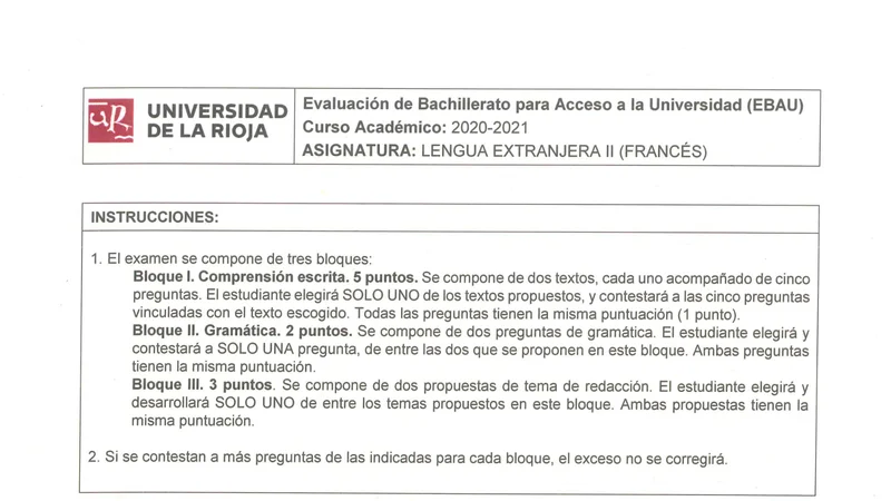 Reservar clase gratis →Examen de Francés selectividad La Rioja (Ordinaria 2021)