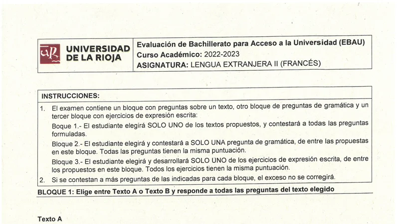 Examen PAU Francés selectividad La Rioja — Extraordinaria 2023