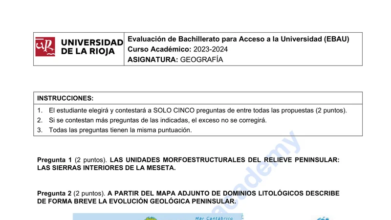 Reservar clase gratis →Examen de Geografía selectividad La Rioja (Ordinaria 2024)
