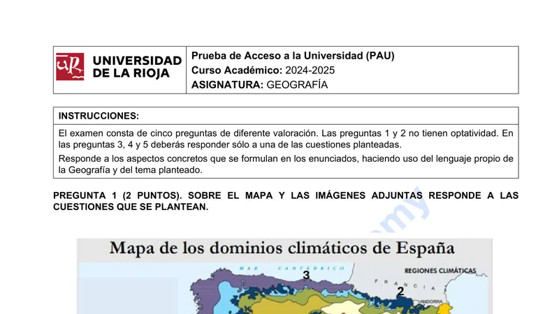 Reservar clase gratis →Examen de Geografía selectividad La Rioja (Ordinaria 2025)
