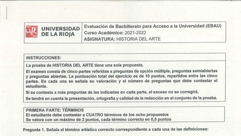 Examen PAU Historia del Arte selectividad La Rioja — Ordinaria 2022
