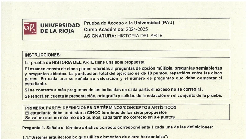 Reservar clase gratis →Examen de Historia del Arte selectividad La Rioja (Extraordinaria 2025)