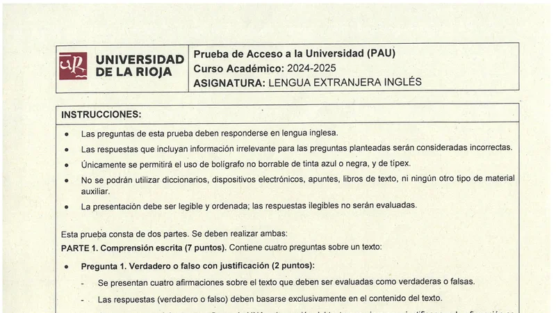 Examen PAU Inglés selectividad La Rioja — Extraordinaria 2025