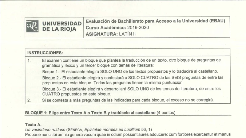 Reservar clase gratis →Examen de Latín II selectividad La Rioja (Extraordinaria 2020)