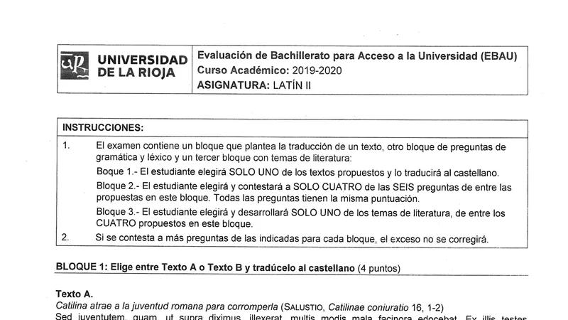 Reservar clase gratis →Examen de Latín II selectividad La Rioja (Ordinaria 2020)
