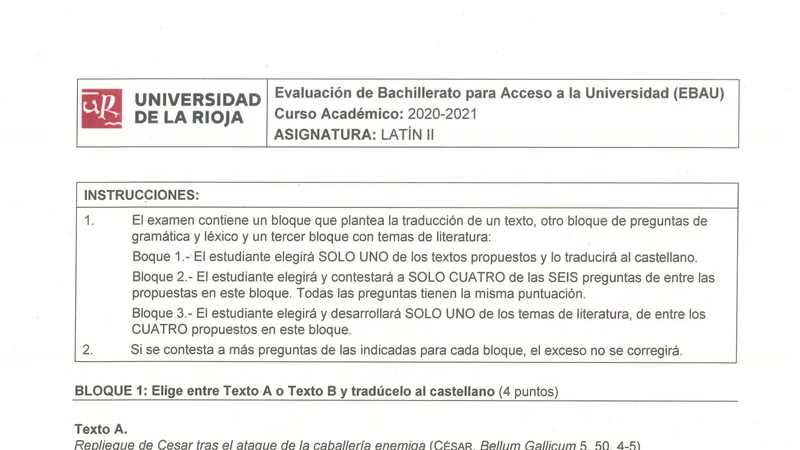 Reservar clase gratis →Examen de Latín II selectividad La Rioja (Extraordinaria 2021)