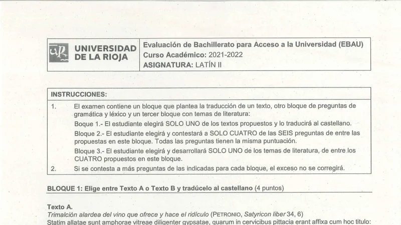 Reservar clase gratis →Examen de Latín II selectividad La Rioja (Extraordinaria 2022)