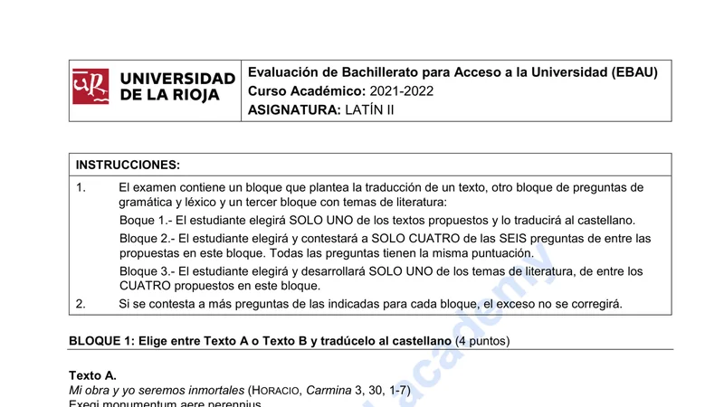 Reservar clase gratis →Examen de Latín II selectividad La Rioja (Ordinaria 2022)