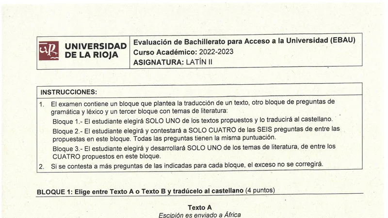 Reservar clase gratis →Examen de Latín II selectividad La Rioja (Extraordinaria 2023)
